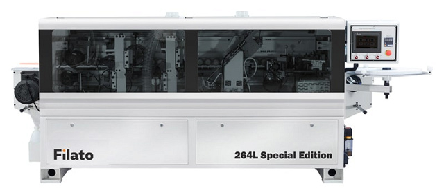 Автоматический кромкооблицовочный станок Filato OPTIMA 264L SE предназначен для облицовывания прямолинейных кромок плитных материалов рулонными кромками АБС, ПВХ и полосовым кромочным материалом толщиной до 2 мм.