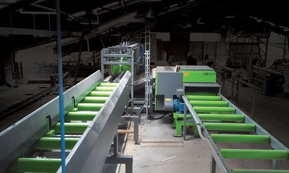 Непрерывная, высокопроизводительная линия распила для малых и средних бревен.