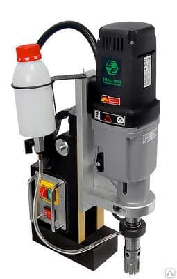 Мощный немецкий электродвигатель с двухкамерной системой смазки редуктора и механическим переключением четырех скоростей; шпиндель с конусом Морзе 3 для стандартных сверл; высокая точность изготовления - максимальное радиальное биение в пределах 0,08 мм; в комплекте держатель корончатых сверл с хвостовиком Weldon. Новый электромагнит, с увеличенной прижимной силой и специальной водостойкой пропиткой катушек. Этот магнитный сверлильный станок производится в России.