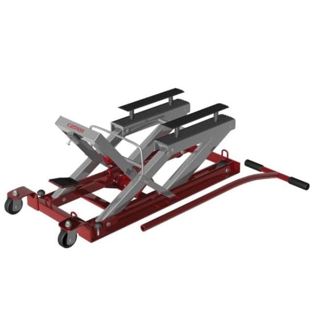 С легкостью поднимает квадроциклы, мотоциклы. Используется для техосмотров, ремонта и ухода. Подходит к большинству мотоциклов и квадроциклов.