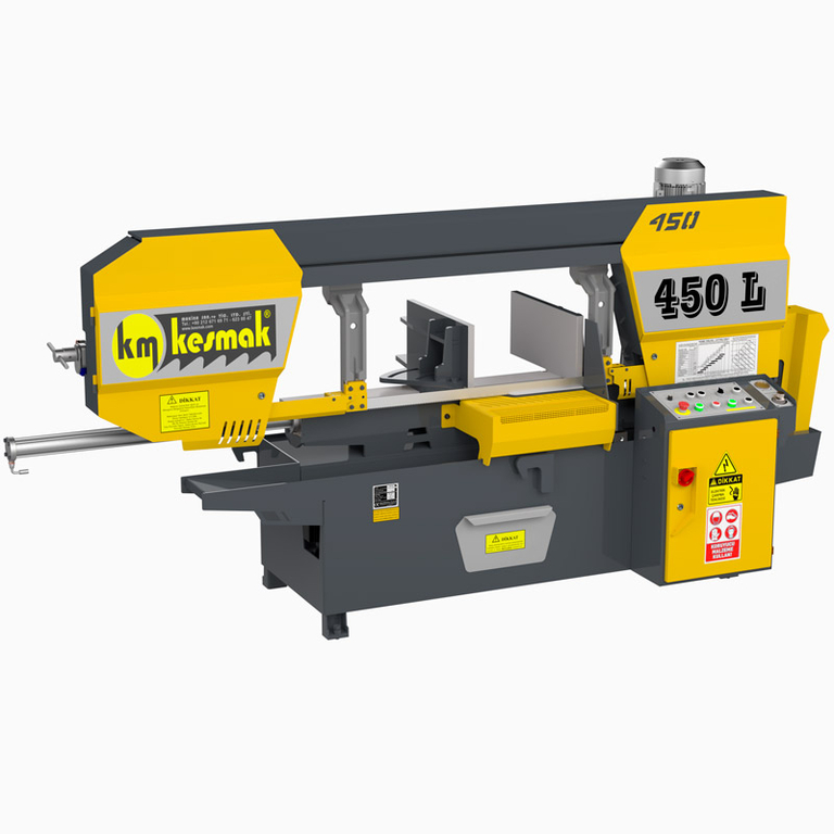 Ленточнопильные станки по металлу Kesmak KLY 450 служат для высокопроизводительной резки металлов, используемых в современном машиностроении: цветных, никелевых, титановых и других сплавов, а также высоколегированных и конструкционных сталей. Ленточнопильные станки используются для нарезки в размер труб, фасонного профиля и сплошного проката.Режущим инструментом ленточнопильного отрезного станка является ленточная пила, сваренная в кольцо и натянутая на шкивах.