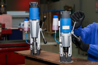 В мастерскую, специализирующуюся на металлообработке, тоже нужен станок профессионального класса. Учитывая, что придется иметь дело с твердым материалом, сверление которого создает большую нагрузку на двигатель, желательно приобрести машину, питающуюся от трехфазного источника тока. Кроме того, предпочтительнее купить станок, рассчитанный в первую очередь на работу с металлом, для которого сверление дерева и пластмассы – дополнительная возможность, а не наоборот. Они не просто мощные (для железа требуется 700 Вт и выше), их жесткая конструкция, имеющая значительный вес, состоит из крепких, точно подогнанных деталей, не создающих вибрации. Поэтому на таких установках можно не только сверлить, но и выполнять развертывание и зенковку отверстий.