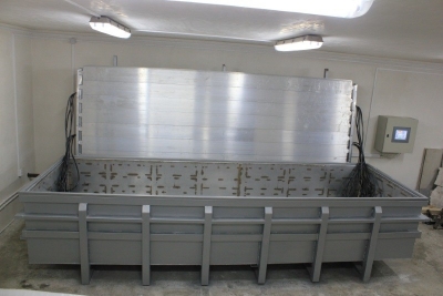 Камерные сушилки более короткие, в процессе сушки по всей камере поддерживаются одинаковые параметры. Если глубина продуваемости от 2 метров, то с целью уравнивания условий сушки применяют метод реверсации вентиляционного направления. Камеру заполняют и опустошают с одной стороны, если дверь одна. Пиломатериал в них можно сушить любой до разных показателей влажностей. Именно такие конструкции применяются в нашей стране чаще всего.