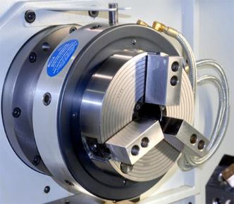 - Механизированные: Пневматические, гидравлические, электрические. Автоматизируют процесс зажима-разжима заготовки с заданным усилием. Гидравлические патроны чаще используются на станках с диаметром патрона больше 200 мм (диаметры импортных патронов указаны в дюймах 6, 8, 10, 12, 15 и далее дюймов). Пневматические патроны применяются на токарных автоматах. Цанговые патроны служат для зажима прутковой заготовки относительно небольшого диаметра. Электрические. не получили широкого распространения.