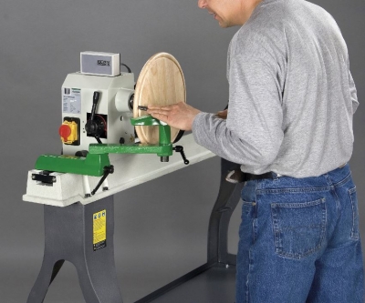 Электрический привод отвечает за асинхронное вращение, а скоростной блок позволяет выбрать оптимальное количество оборотов в минуту, обычно этот показатель варьируется от 2000 до 5000. Фиксирующие и зажимные механизмы обеспечивают комфорт при выполнении работы и исключают возможность падения болванки или изменения ее положения. Подручник используется при обрезке и декорировании деревянных заготовок.