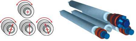Вал бочкообразной формы. Технология обеспечивает компенсацию прогиба вала.