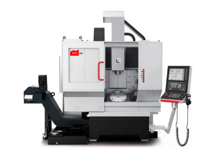 • В 5-осевом обрабатывающем центре серии DVU используется портальная конструкция, в которой три оси X/Y/Z координируются с осями A + C, что позволяет выполнять пятиосевую интерполяционную обработку. Поворотный стол доступен в двух вариантах: с механической трансмиссией и прямым приводом от моментного двигателя. Шпиндель может быть оснащен прямым приводом от двигателя или шпинделем с электроприводом, а магазин инструментов рассчитан на 24 и 48 комплектов;