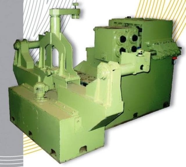 Агрегатный станок оснащенный оснащённый четырьмя индивидуальными фрезерными головками с гидравлической подачей, перемещающимися по направляющим, наклоненными под 45° к основанию станины, позволяет обрабатывать поверхности, как одной фрезерной головкой, так и всеми четырьмя одновременно. Станок оборудован гидравлическим зажимом обрабатываемой детали.