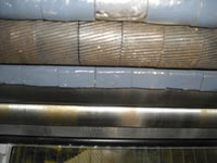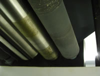 На выходе после обработки заготовку принимают два приводных вальца: 1-гладкий металлический, 2-гладкий обрезиненный |