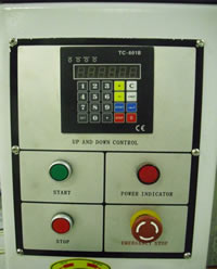 - Настройка рабочего стола на толщину обрабатываемого изделия осуществляется с помощью электродвигателя с отcчетом размера по цифровому индикатору с точность 0,01 мм. Точная поднастройка производится с помощью маховика с рукояткой.