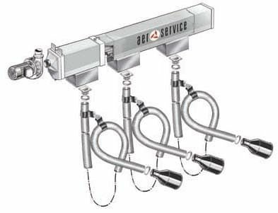 Рельсовая система вытяжки Aerservice KITCA223100160 широко используется в автомобильном секторе, потому что единственный коллектор всасывания выхлопных газов может перемещаться по многочисленным постам. Система, поставляется заранее смонтированная и полная всех необходимых конструкций для установки на стену, комплектация вентилятором связь с линией выброса паров в атмосферу.