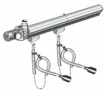 Рельсы сделаны из алюминиевого сплава, что гарантирует легкость конструкции и сопротивление воздействиям химических компонентов, содержавшим в выхлопном газе. Рельсы, с поддержкой заранее смонтированными кронштейнами из углеродистой стали, позволяет создание очень длинных всасывающих линий, стойких к скручиванию под нагрузкой. Система обеспечивает прекрасную внутреннюю вакуумную изоляцию, благодаря специальной резиновой изоляции стойкая к агрессивным компонентам выхлопного газа, высокой температуре, старению и трению. Установка конструкции очень упрощена с помощью большого диапазона телескопических кронштейнов, которые могут использоваться для установки также в на существенных высотах Рекомендуется исключительно для автомобильных сервисов в ситуациях, в которых система может быть одновременно использована на 2-х параллельно стоящих постах.