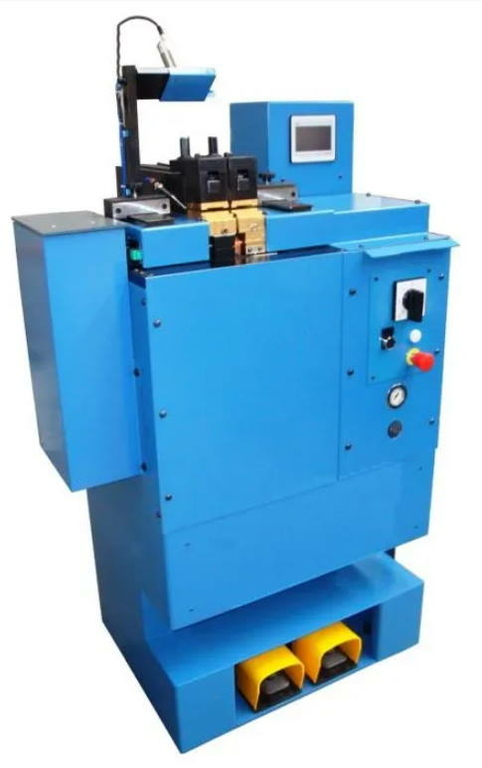 Аппарат стыковой сварки для любого типа металлического полотна. Тяжелая рама для высокой производительности. Полностью контролируется контроллером ПЛК. Позволяет записывать параметры работы. Давление высадки пневматическим поршнем. Пневматические зажимы. Температура контролируется оптическим пирометром.