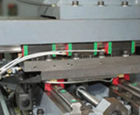 Направляющие Жесткие линейные направляющие установлены на всех осях станка. Для перемещения инструментального суппортаиспользуются 6 направляющих блоков, применение которых дает высокую жесткость и точность по сравнению с токарными станками, использующимиревольверные головки. |