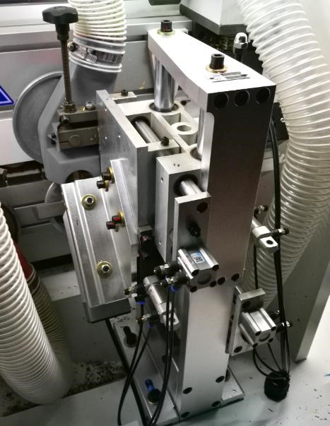 ![]() | Узел прифуговки Фрезерует торец плит для получения идеальной поверхности для нанесения клея, позволяя добиться безукоризненной линии стыка (шва) между плитой и кромочным материалом. Два высокочастотных двигателя. Работа двигателей синхронизирована, чтобы избежать сколов. Аспирационные патрубки для каждого двигателя ᴠ синхронизированный обдув обработанных плит (деталей) ᴠ регулируемая величина съема с настройкой линейки с центрального пульта управления. ᴠ регулировка двигателей по высоте позволяет менять положения фрез относительно точки обработки. Станок для интенсивной работы укомплектован алмазными фрезами LEUCO (Германия) Φ100×φ30×48H |