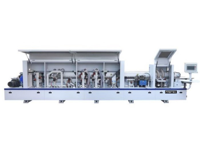 • Станок выполняет полный цикл обработки кромок, включая предварительное фрезерование, оклеивание, торцевую обрезку свесов, фрезерование свесов сверху и снизу, обкатку углов, циклевание и полировку;