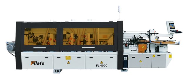 Автоматический кромкооблицовочный станок Filato FL 4000 предназначен для облицовывания прямолинейных кромок плитных материалов рулонными кромками АБС, ПВХ и полосовым кромочным материалом толщиной до 3 мм.