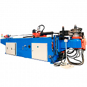 Подача трубы, поворот в пространстве осуществляется с помощью сервоприводов. Контроль гибочной операции производится при помощи гидравлического привода с функцией понижения скорости перед окончанием гиба для обеспечения высокой точности гибки. Сегментный кулачковый цанговый зажим обеспечивает надежную фиксацию трубы в подающей каретке. Привод отвода дорна позволяет получать изделия с минимальной овальностью. Станки оснащаются автоматической системой смазки дорна, а также приводом подачи хвостового прижима, который обеспечивает проскальзывание трубы относительно зажимов оснастки. Мощная станина обеспечивает жесткость конструкции и точность взаимодействия узлов. Привод отвода дорна позволяет получать изделия с минимальной овальностью. Полуавтоматическая централизованная система смазки ответственных узлов станка обеспечивает удобство работы и обслуживание станка.