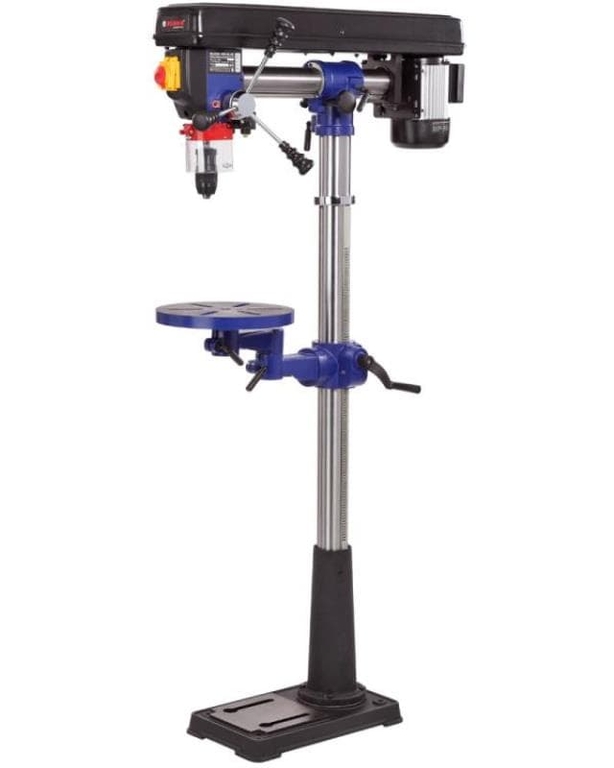 Модель RDP430-16F является радиальной, то есть, возможна регулировка положения сверлильной головы по высоте, относительно колонны, по горизонту и по окружности (вращается вокруг своей оси) Стол, опора и корпус сверлильной головки выполнены из чугуна, что придает станку серьезный вес 55 килограмм. Двигатель асинхронный, мощностью 600 Вт.