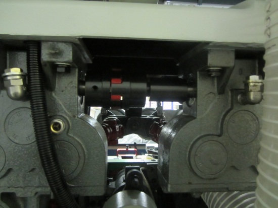 Цилиндрические направляющие, разнесенные в начало и конец рабочей зоны станка в количестве 2 шт, по которым перемещается траверса с роликами системы подачи - увеличенного сечения (в зависимости от модели станка), что позволяет сохранять соосность системы подачи к рабочему столу даже при максимально частом перемещении подающей траверсы. |