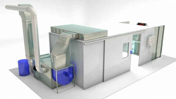 Чистая комната предназначена для покраски различных изделий методом распыления. Позволяет комфортно работать с полиуретановыми, полиэфирными, акриловыми, водными и др. ЛКМ. Предварительно нагретый приточный воздух подаётся в комнату через фильтр в потолочном пленуме, что создаёт стабильный ламинарный поток чистого воздуха в комнате. Данный поток двигается в противоположную сторону комнаты и подхватывает опыл краски, который образуется в зоне распыления ЛКМ. Опыл краски эффективно удаляется из рабочей зоны, что позволяет снизить сорность и повысить качество готовой продукции. Таким образом создаются оптимальные условия для процесса покраски фасадов, дверей и других элементов мебели, где присутствуют высокие требования ко внешнему виду готового изделия. За счёт работы приточно-вытяжной системы вентиляции создаётся избыточное давление в чистой комнате, что препятствует проникновению сора и пыли из соседнего помещения. Это особенно актуально, при расположении камеры вблизи участка шлифовки и покраске изделий с высоким уровнем глянца.