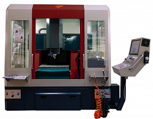 5-ти хкоординатный вертикальный фрезерный станок со съемным наклонно-поворотным столом с диаметром планшайбы 125 мм, со сменой инструмента (12 позиций), и c русскоязычной стойкой ЧПУ Clever (эмулирует Fanuc, HEIDENHAIN и др. с функцией Lookahead без ограничения по кадрам) При снятом наклонно-поворотном столе, размер рабочего стола 500*700, ход по оси Z- 300 мм.