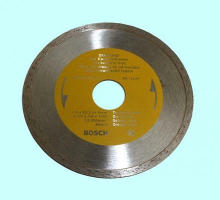 Диск отрезной алмазный 115х1,6х5х22,2мм с непрерывной режущей кромкой по керамике (модель DS115FPE) от известного производителя BOSCH предназначен для точной и качественной работы с керамическими поверхностями.