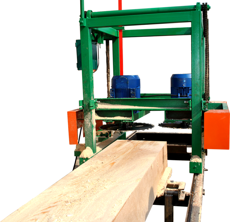 - Высокая производительность — одновременная работа двух дисков позволяет сократить время обработки каждого бревна;