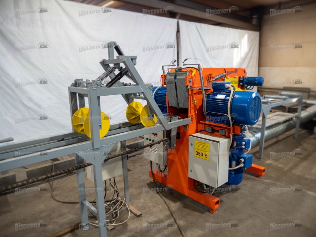 После завершения фрезерной обработки бревно поступает на финальный этап, где производится его раскрой с использованием набора круглых пил. Данный технологический узел обладает следующими характеристиками: