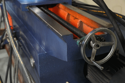 Задача угла гиба Угол гиба задается также механически путем поворота ограничителя хода гидравлического цилиндра на каждой из голов, там же интегрирована линейка с градацией. |
