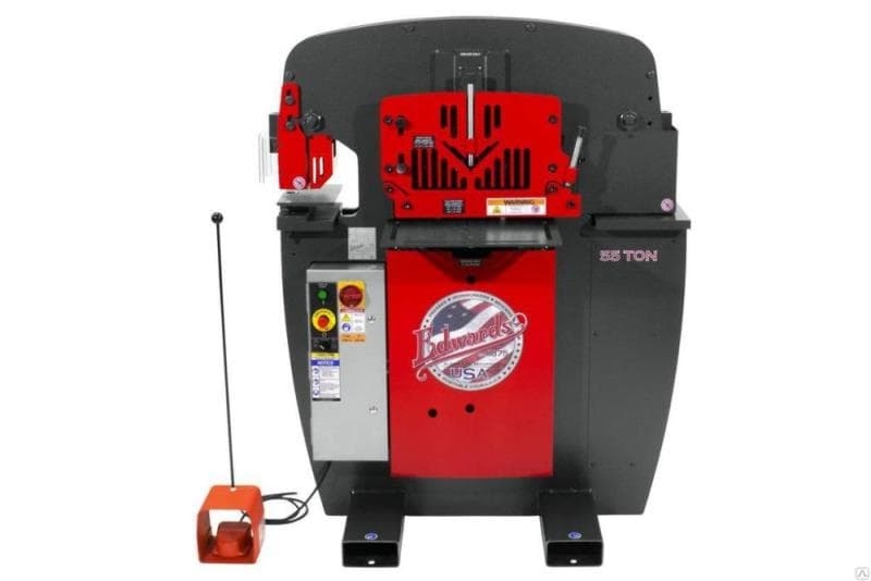 Комбинированные гидравлические пресс-ножницы EDWARDS IW55 предназначены для резки материалов различного сечения: листовой металл, кругляк, квадрат, профиль, уголок, швеллер, арматуру и многое другое. Управление резкой осуществляет мощный гидравлический привод с усилием до 55 Тн.