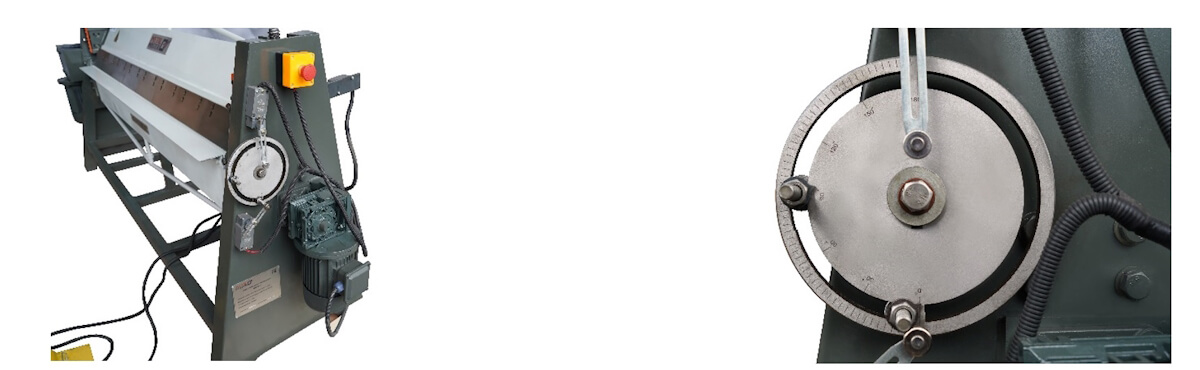 Угол гиба можно выставить с помощью механического угломера, расположенного с правой стороны станка. |
