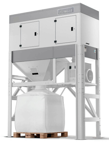 Накопитель типа биг-бег Один или два накопителя с объемом 1,35 м3каждый. Для присоединения биг-бега к корпусу фильтра используется система быстрого крепления в виде бандажа и винта. Для удобной разгрузки накопитель имеет петли для подъема мешка вилочным погрузчиком, а дно Биг-бега расшнуривается. Рекомендуется под мешок ставить поддон. |