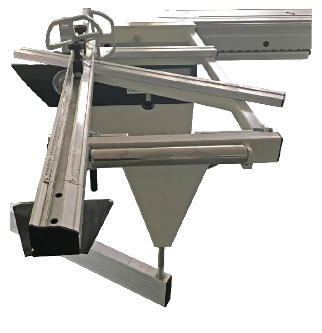 Данное устройство, устанавливается на подвижную каретку. Представляет собой алюминиевую линейку с установленным на ней алюминиевым перекидным упором. Линейный размер выставляется по металлической мерной шкале, установленной на линейке под углом 30 град, угловой размер выставляется по металлической сферической шкале, установленной на поворотном механизме линейки. С его помощью можно производить резы под любыми углами в горизонтальной плоскости.