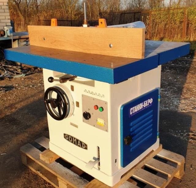 Поступление 05.03.2019На склад поступил станок фрезерный GOMAD б у (производства Польша). Конструктивно фрезерный станок по дереву состоит из станины с массивным столом. На нем установлен шпиндель с режущим инструментом. Высота рабочего вала регулируется при помощи маховика. Фреза совершает вращательное движение, заготовка поступательно перемещается относительно оси шпинделя. Подача может быть ручной или автоматической. Выход режущего края фрезы регулируется, это позволяет контролировать глубину сбора. Наличие подвижного транспортира дает возможность поворачивать заготовку под углом.Для обработки используется разная оснастка – пальцевые, дисковые, концевые, фасонные, шпоночные фрезы, шлифовальные втулки.Наибольшая толщина обрабатываемой заготовки, мм150Размеры фрезерного стола (длина х ширина), мм1000х1015Наибольшее вертикальное перемещение шпинделя, мм130Диаметр шпиндельной оправки, мм32Наибольший диаметр режущего инструмента, мм250Частота вращения шпинделя, об/мин3000;4500;6000;9000Мощность электродвигателя, кВт4/4,75Габариты, мм1580х1575х1300Масса Gomad, кг630