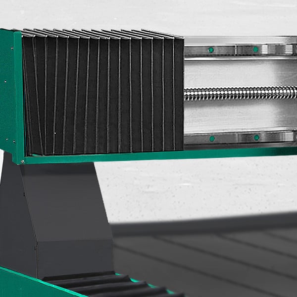 Закрытые направляющие. Все направляющие на станке надежно закрыты шторками, что не позволяет каменной стружки и СОЖ попадать на них. Тем самым повышая срок службы станка. |