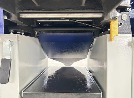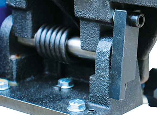 Столы откидываются поочередно, и базируются на специальных упорах, которые предотвращают повреждение станины станка. Принимающий фуговальный стол снабжен механизмом стопорения. |