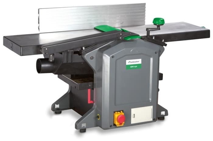 Настольный строгальный (фуговально рейсмусовый) станок HolzStar ADH 250 с шириной строгания 254 мм, автоподачей заготовки и двумя строгальными ножами. Стальной вал подачи с зубчатой нарезкой и обрезиненый выходной вал.