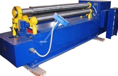 Принцип работы заключается в гибке-прокатке листовых заготовок в валках машины — протягивании листа между верхними и боковыми валками с одновременной гибкой его верхним валком.