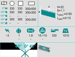 | Наибольшая длина стороны заготовки квадратной формы (при угле реза 0 град.), мм. | 330 |