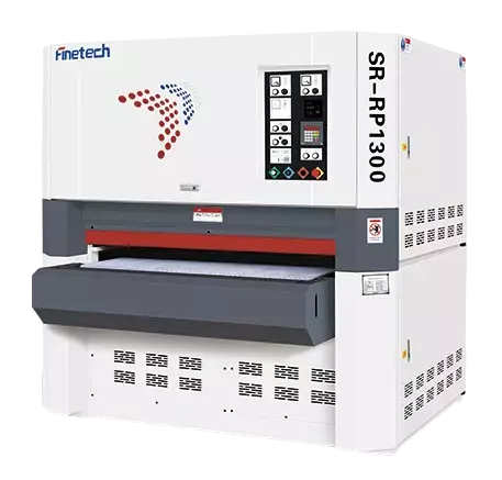 FineTech SFR-R 1300V – имеет не подвижный рабочий стол, размер настраивается непосредственно на самом узле шлифования, поэтому данный станок идеально встраивается в линии шлифования или в линии по УФ нанесению лакокрасочных материалов.