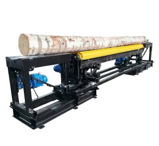 После укладки бревна на кантователь, оператор поднимает стол кантователя и вращением приводных валов позиционирует бревно в оптимальное положение для последующего распила.