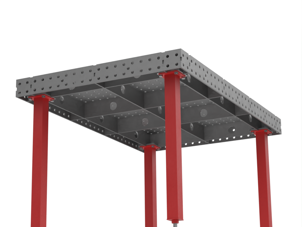 Сварочно-сборочный стол от Keepler-Stan предназначен для позиционирования и фиксации деталей и узлов металлических конструкций, а также для позиционирования роботизированной сварки. Усиленная ребрами жесткости столешница имеет отверстия диаметром 16мм и координатную сетку с шагом 50 мм для использования ее в качестве шаблона а так же нанесена линейка по длинной стороне стола для удобства позиционирования деталей. Толщина и высота ребер жесткости соответствует толщине столешницы и заявленной высоте боковой стенки. Допустимое отклонение по плоскости столешницы 1мм на 1 пог.м. стола. Высота стола 900мм, с возможностью регулировки 50 мм.
