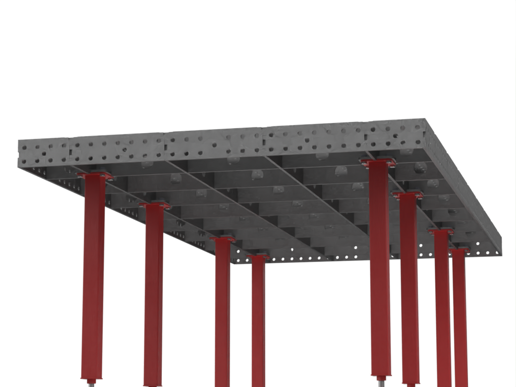 Сварочно-сборочный стол от Keepler-Stan предназначен для позиционирования и фиксации деталей и узлов металлических конструкций, а также для позиционирования роботизированной сварки. Усиленная ребрами жесткости столешница имеет отверстия диаметром 16мм и координатную сетку с шагом 50 мм для использования ее в качестве шаблона а так же нанесена линейка по длинной стороне стола для удобства позиционирования деталей. Толщина и высота ребер жесткости соответствует толщине столешницы и заявленной высоте боковой стенки. Допустимое отклонение по плоскости столешницы 1мм на 1 пог.м. стола. Высота стола 900мм, с возможностью регулировки 50 мм.