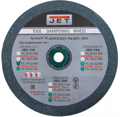 Круг для точила 150x20x12,7 мм, 80G, зеленый (PG150.02.080)