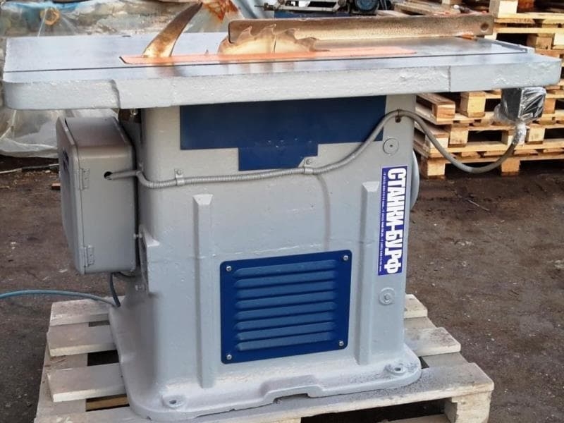 Жесткая сварная станина станка коробчатой формы. Сверху установлен рабочий чугунный стол. Направляющая линейка усиленной конструкции крепится на столе; Наличие ограждение пилы с патрубком для стружкоотсоса; Когтевая защита от обратного выброса заготовки; Суппорт с приводом и механизм регулировки степени выступания пильного диска над столом станка расположен внутри станины на подмоторной плите. Применяется в столярных цехах малой и средней производительности.