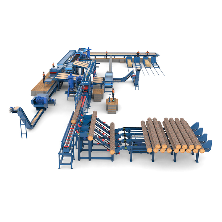 Установленный в технологической линии вместе с подавателем бревен и транспортёрами, станок характеризуется высокой производительностью распила, которая достигает до 300 – 400 м3 круглого леса в смену.