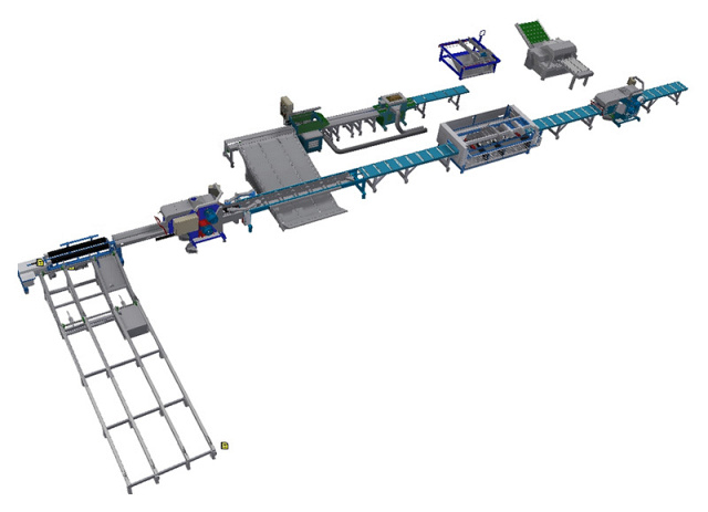 Линия предназначена для рациональной переработки круглого леса, в том числе тонкомерного сырья и баланса, в обрезную доску и паллетную заготовку.