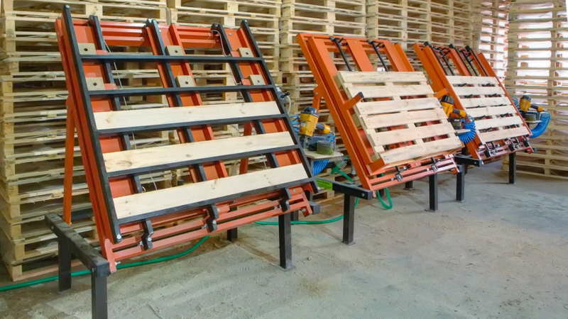 Универсальная линия сборки поддонов PalletsLine позволяет оптимизировать процесс сборки поддона из готовой паллетной заготовки с использованием пневматических гвоздезабивных инструментов. Своими характеристиками полностью отвечает потребностям средних и крупных производителей поддонов. Позволяет быстро и эффективно запустить производство высококачественных поддонов за 1 день.