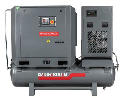 Для производства сжатого воздуха высокого качества в небольших объемах, DALGAKIRAN предлагает винтовой компрессор с частотным преобразователем серии INVERSYS 7 PLUS. Воздушный компрессор данной модели имеет компактные габаритные размеры, невысокий уровень шума.